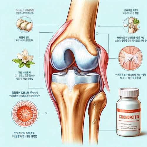 콘드로이친은 연골 세포의 성장을 촉진하고 연골 조직의 파괴를 방지하는 데 도움을 줍니다. 이는 연골이 자연스럽게 재생되도록 지원하며, 관절염으로 인한 손상을 늦춥니다.
