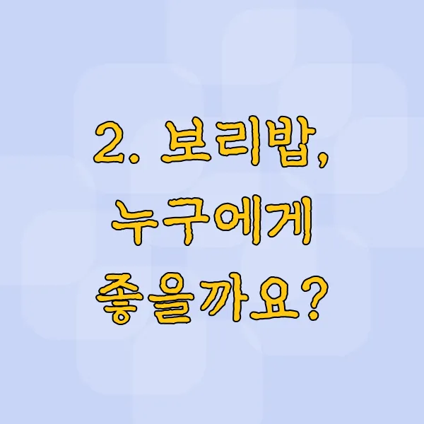 보리밥은 대부분의 사람들에게 유익하지만, 특히 다음과 같은 분들께 더욱 좋습니다.
