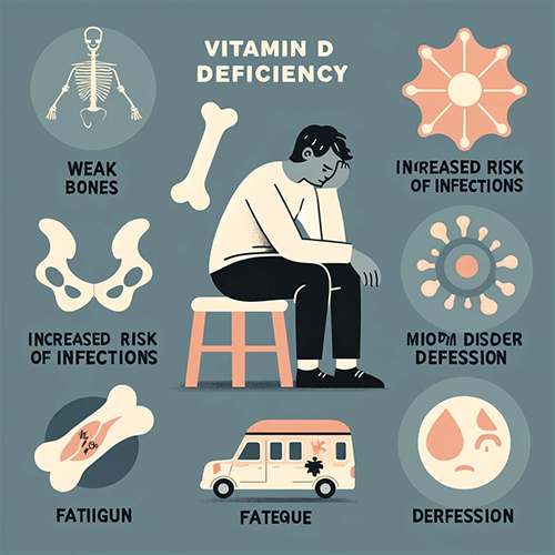 비타민D 부족이 장기화되면, 뼈의 약화와 관련된 더 심각한 조건들이 나타날 수 있습니다. 어린이에서는 구루병이, 성인에서는 골연화증이 발생할 수 있으며, 이는 뼈가 부드러워지고 쉽게 변형될 수 있음을 의미합니다. 또한, 연구에 따르면 비타민D 부족은 우울증과 같은 정신 건강 문제와도 연관이 있을 수 있습니다.