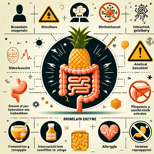 브로멜라인 효소는 많은 건강 이점을 제공하지만, 일부 사람들에게는 부작용이 발생할 수 있습니다. 가장 흔한 부작용으로는 소화기 계통의 불편함이 있으며, 특히 과다 섭취 시 복통, 설사, 구토 등이 나타날 수 있습니다. 또한, 브로멜라인은 혈액 응고를 방해할 수 있어 항응고제를 복용하는 사람들에게는 사용이 권장되지 않습니다.