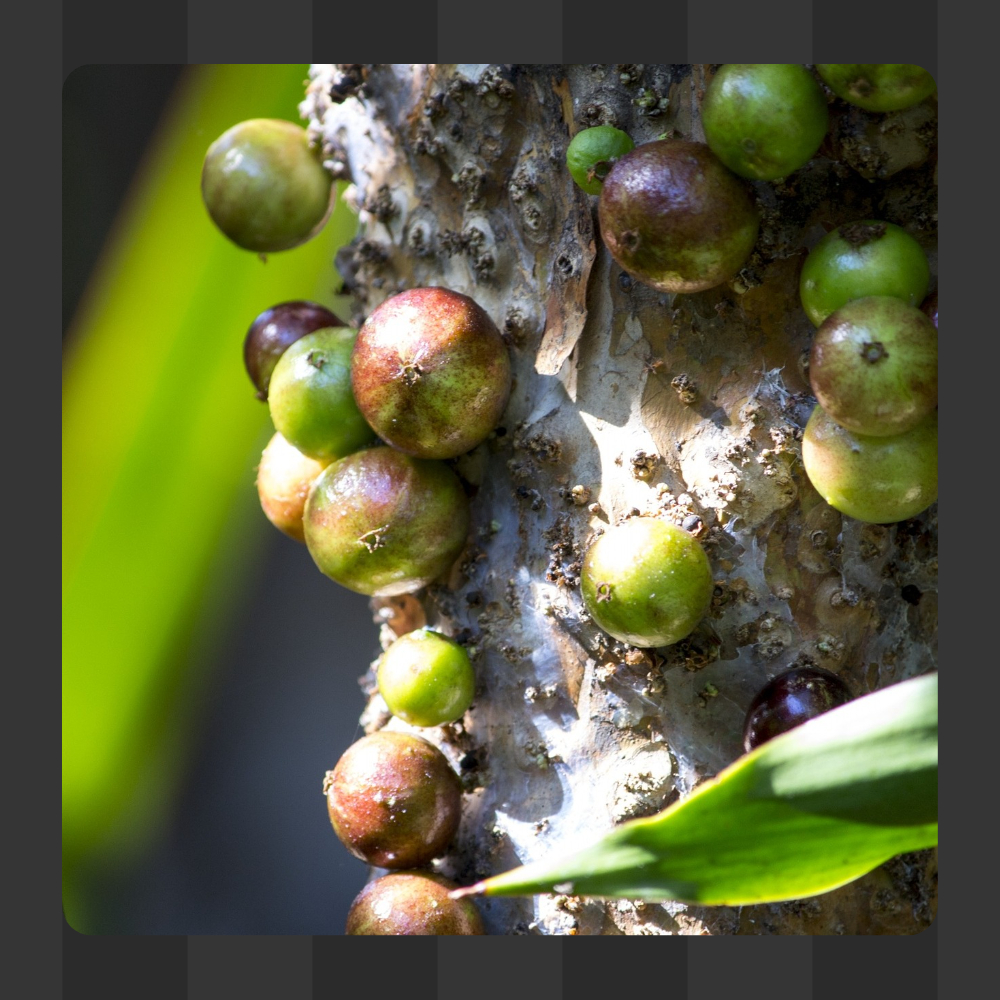 자보티카바는 브라질 열대 지방에서 자라는 작은 과일로 포도와 비슷한 생김새를 가지고 있으며 자보티카베이라 나무에서 열매로 열립니다.