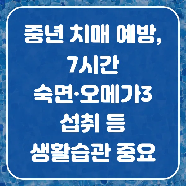 젊은 치매, 남의 이야기가 아닙니다! 중년에 접어들면서 건망증이 심해지셨나요? 치매는 조기 예방이 중요합니다. 7시간 숙면, 오메가3 섭취, 꾸준한 운동 등 생활 습관 개선을 통해 중년 치매를 예방하는 핵심 전략을 지금 바로 확인하세요! 알츠하이머, 더 이상 남의 일이 아닙니다!