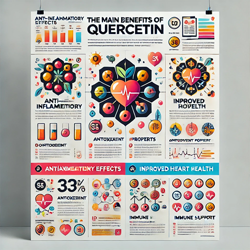 퀘르세틴은 강력한 항산화 작용, 염증 완화, 심혈관 건강 개선, 면역 기능 향상, 알레르기 증상 완화 등 다양한 건강상의 이점을 제공합니다. 이 성분은 자연적으로 많은 과일과 채소에 존재하며, 필요시 보충제 형태로도 섭취할 수 있습니다.