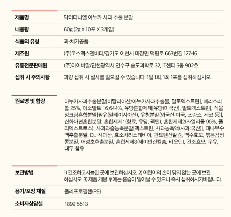 1. 닥터 다니엘 아누카사과 추출분말 스틱