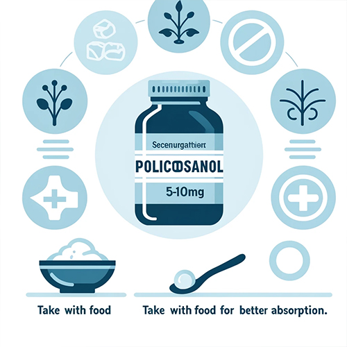 폴리코사놀은 지방과 함께 섭취할 때 흡수가 더 잘되므로, 식사와 함께 복용하는 것이 좋습니다. 또한 폴리코사놀의 효과를 보기 위해서는 정기적으로 복용하는 것이 중요합니다.